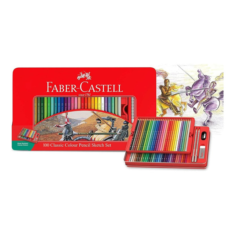 مدادرنگی 100 رنگ کلاسیک فابر کاستل جعبه فلزی