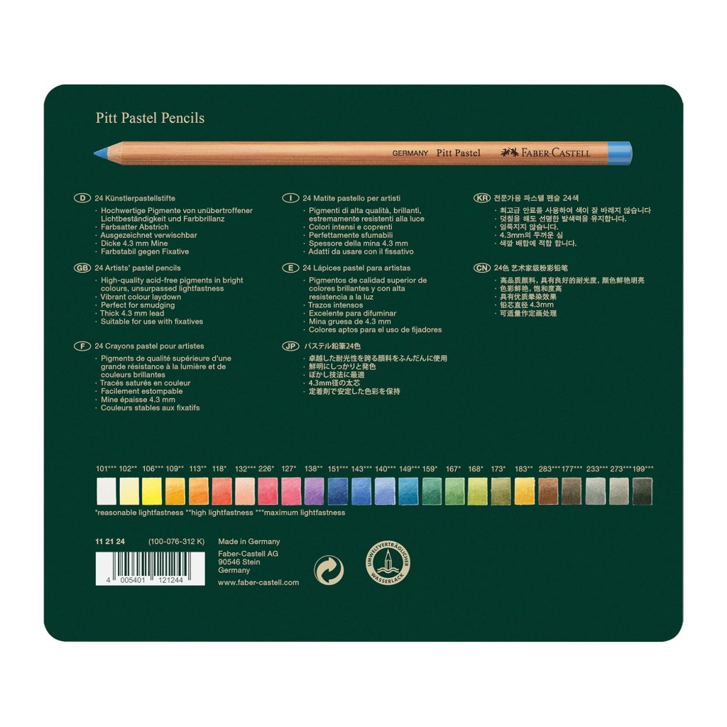 مداد پاستل فابر کاستل ترکیبی هوشمندانه از نرمی و لطافت پاستل گچی با کنترل و دقت مداد است که برای اجرای جزئیات ظریف و حرفهای در آثار هنری طراحی شده. این مدادها با پیگمنت بالا و بافت نرم، امکان ایجاد رنگهای مخملی، سایهپردازی نرم و بلِند دقیق را فراهم میکنند.